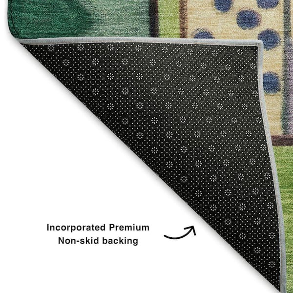 Mayfield Premium Machine Washable Abstract AMF1758 Gold 8 ft. x 8 ft. Round Rug