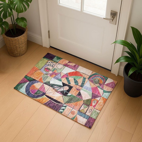 Mayfield Premium Machine Washable Abstract AMF1758 Orange 2 ft. x 3 ft. Area Rug