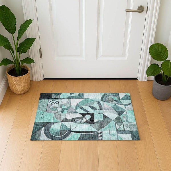 Mayfield Premium Machine Washable Abstract AMF1758 Teal 2 ft. x 3 ft. Area Rug