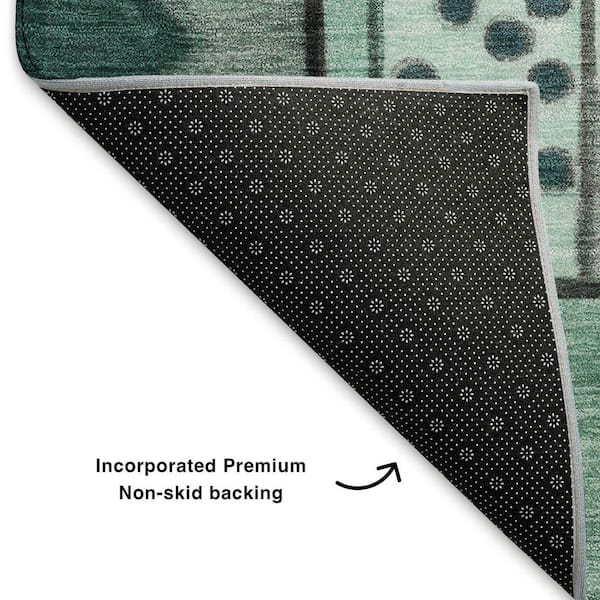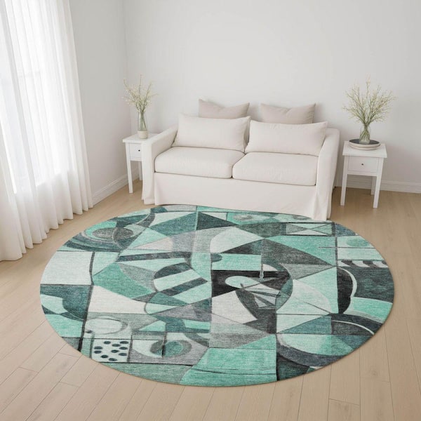 Mayfield Premium Machine Washable Abstract AMF1758 Teal 8 ft. x 8 ft. Round Rug