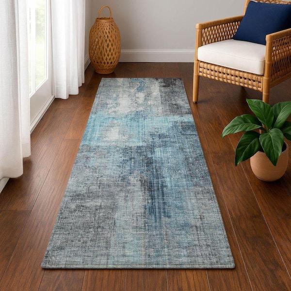 Mayfield Premium Machine Washable Abstract AMF1759 Blue 2 ft. 3 in. x 7 ft. 6 in. Runner Rug