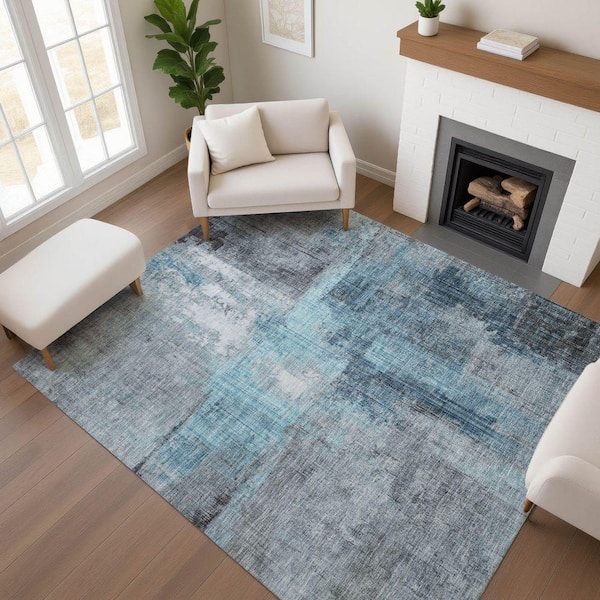 Mayfield Premium Machine Washable Abstract AMF1759 Blue 5 ft. x 7 ft. 6 in. Area Rug
