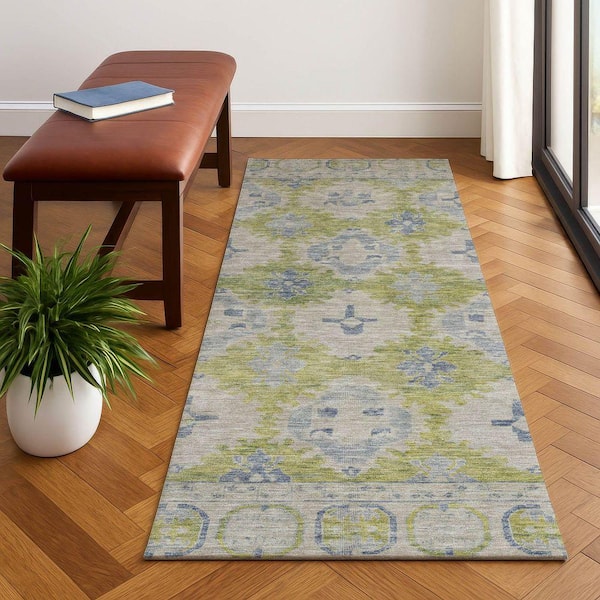 Mayfield Premium Machine Washable Abstract AMF1760 Aloe 2 ft. 3 in. x 7 ft. 6 in. Runner Rug