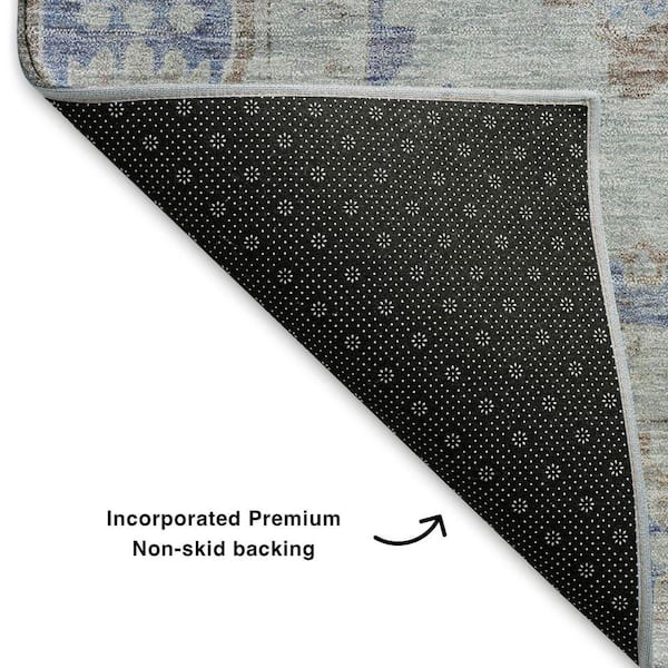 Mayfield Premium Machine Washable Abstract AMF1760 Blue 8 ft. x 8 ft. Round Rug
