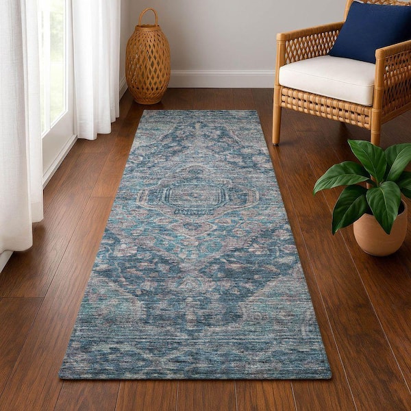 Mayfield Premium Machine Washable Abstract AMF1761 Denim 2 ft. 3 in. x 7 ft. 6 in. Runner Rug