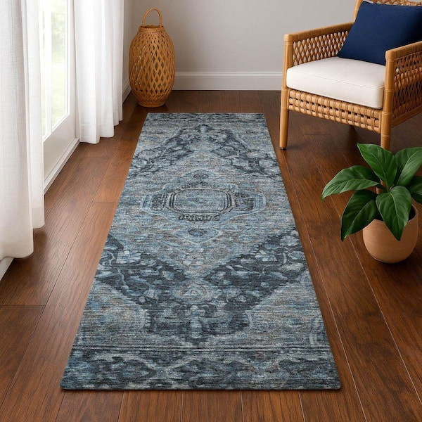 Mayfield Premium Machine Washable Abstract AMF1761 Navy 2 ft. 3 in. x 7 ft. 6 in. Runner Rug