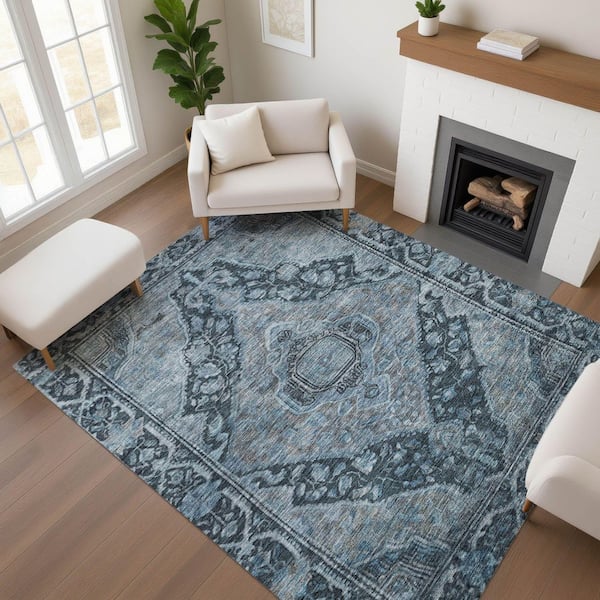 Mayfield Premium Machine Washable Abstract AMF1761 Navy 8 ft. x 10 ft. Area Rug