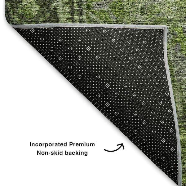 Mayfield Premium Machine Washable Abstract AMF1761 Olive 8 ft. x 8 ft. Round Rug
