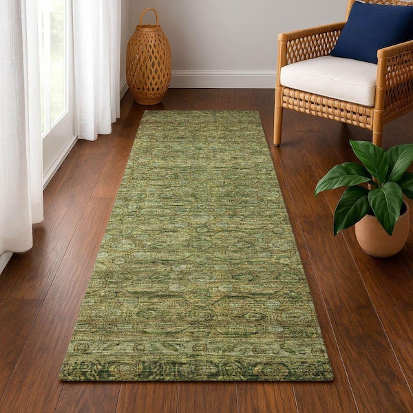 Mayfield Premium Machine Washable Abstract AMF1762 Aloe 2 ft. 3 in. x 7 ft. 6 in. Runner Rug