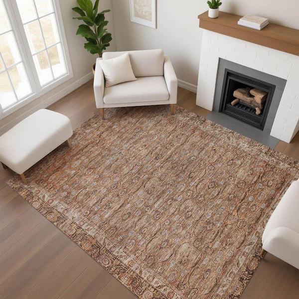 Mayfield Premium Machine Washable Abstract AMF1762 Copper 10 ft. x 14 ft. Area Rug