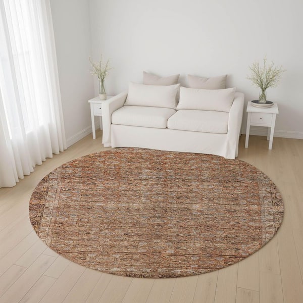 Mayfield Premium Machine Washable Abstract AMF1762 Copper 8 ft. x 8 ft. Round Rug