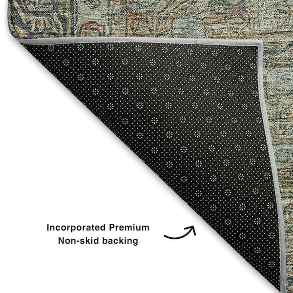 Mayfield Premium Machine Washable Abstract AMF1762 Teal 8 ft. x 8 ft. Round Rug