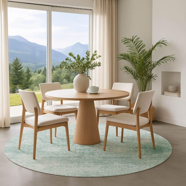 Mayfield Premium Machine Washable Abstract AMF1763 Turquoise 8 ft. x 8 ft. Round Rug