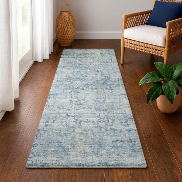 Mayfield Premium Machine Washable Abstract AMF1764 Blue 2 ft. 3 in. x 7 ft. 6 in. Runner Rug