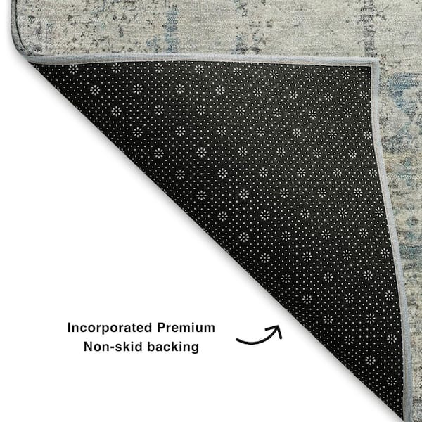 Mayfield Premium Machine Washable Abstract AMF1764 Linen 8 ft. x 8 ft. Round Rug
