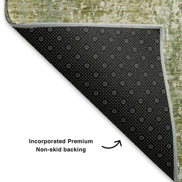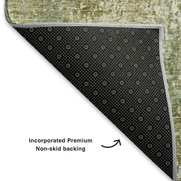 Mayfield Premium Machine Washable Abstract AMF1765 Aloe 8 ft. x 8 ft. Round Rug