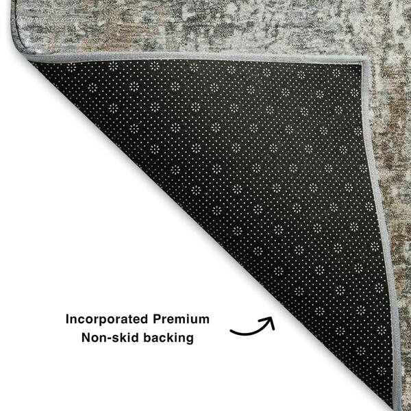 Mayfield Premium Machine Washable Abstract AMF1765 Brown 8 ft. x 8 ft. Round Rug