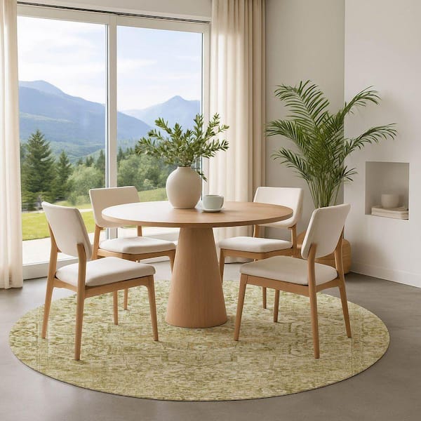 Mayfield Premium Machine Washable Abstract AMF1767 Beige 8 ft. x 8 ft. Round Rug