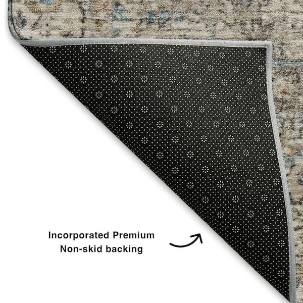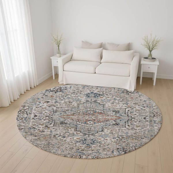 Mayfield Premium Machine Washable Abstract AMF1767 Ivory 8 ft. x 8 ft. Round Rug