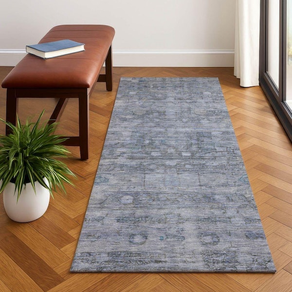 Mayfield Premium Machine Washable Abstract AMF1768 Blue 2 ft. 3 in. x 7 ft. 6 in. Runner Rug
