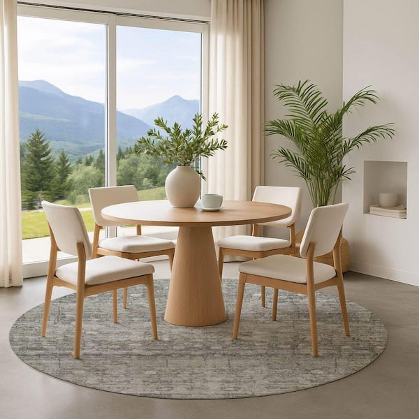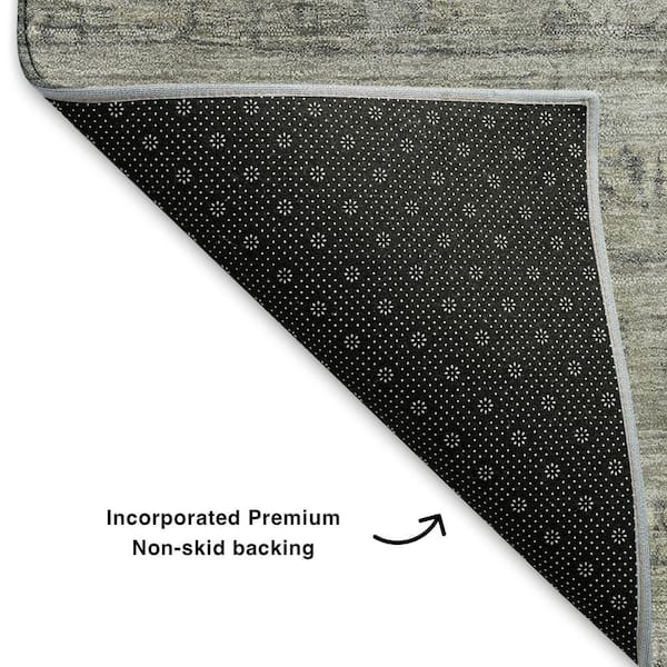 Mayfield Premium Machine Washable Abstract AMF1768 Pewter 8 ft. x 8 ft. Round Rug