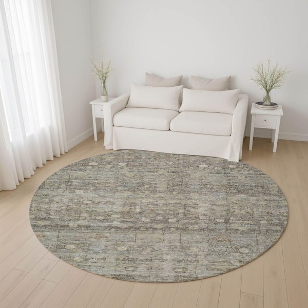Mayfield Premium Machine Washable Abstract AMF1768 Taupe 8 ft. x 8 ft. Round Rug