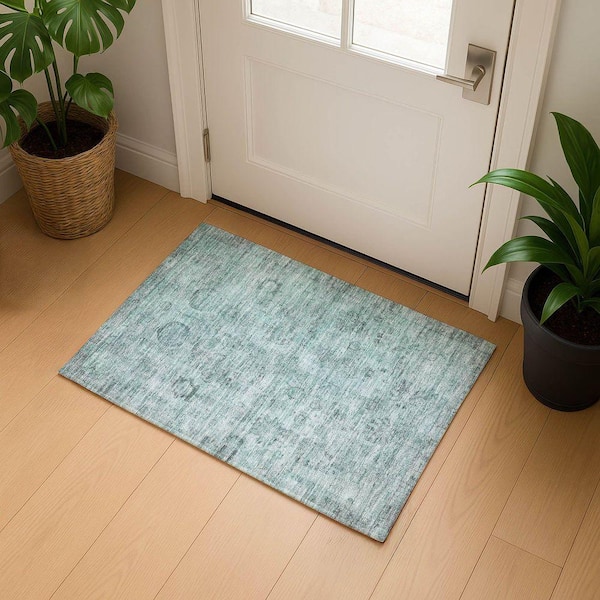 Mayfield Premium Machine Washable Abstract AMF1769 Aqua 2 ft. x 3 ft. Area Rug