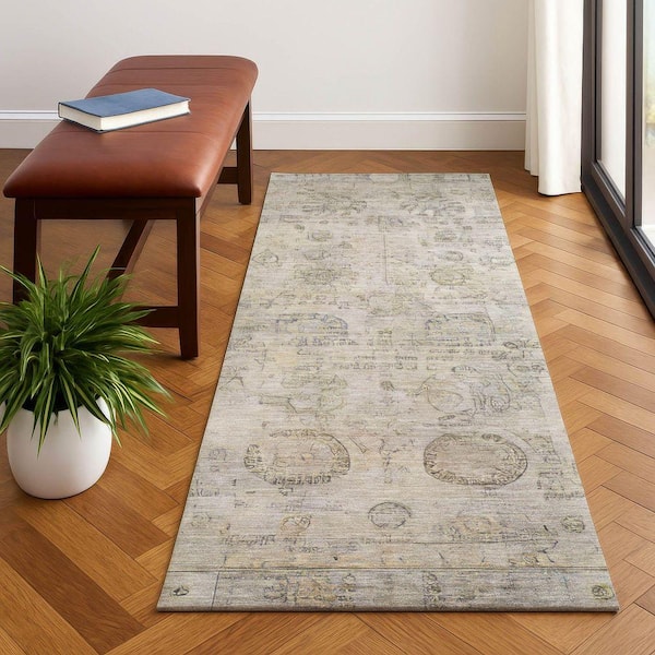 Mayfield Premium Machine Washable Abstract AMF1769 Linen 2 ft. 3 in. x 7 ft. 6 in. Runner Rug