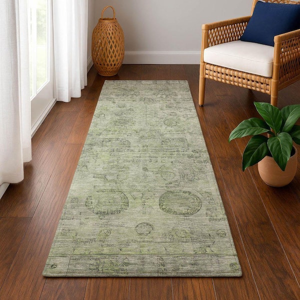 Mayfield Premium Machine Washable Abstract AMF1769 Sage 2 ft. 3 in. x 7 ft. 6 in. Runner Rug