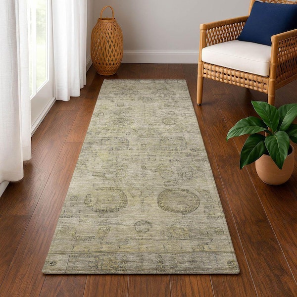 Mayfield Premium Machine Washable Abstract AMF1769 Taupe 2 ft. 3 in. x 7 ft. 6 in. Runner Rug