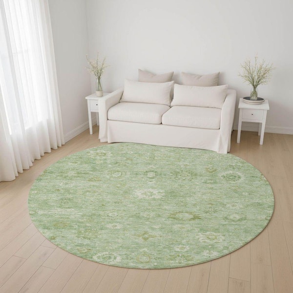 Mayfield Premium Machine Washable Abstract AMF1770 Aloe 8 ft. x 8 ft. Round Rug