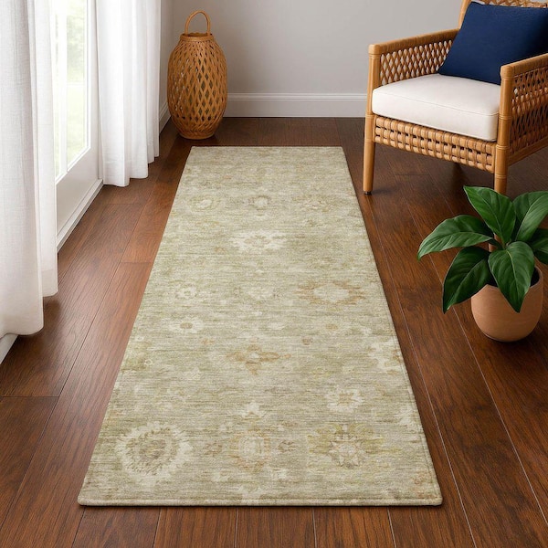 Mayfield Premium Machine Washable Abstract AMF1770 Beige 2 ft. 3 in. x 7 ft. 6 in. Runner Rug