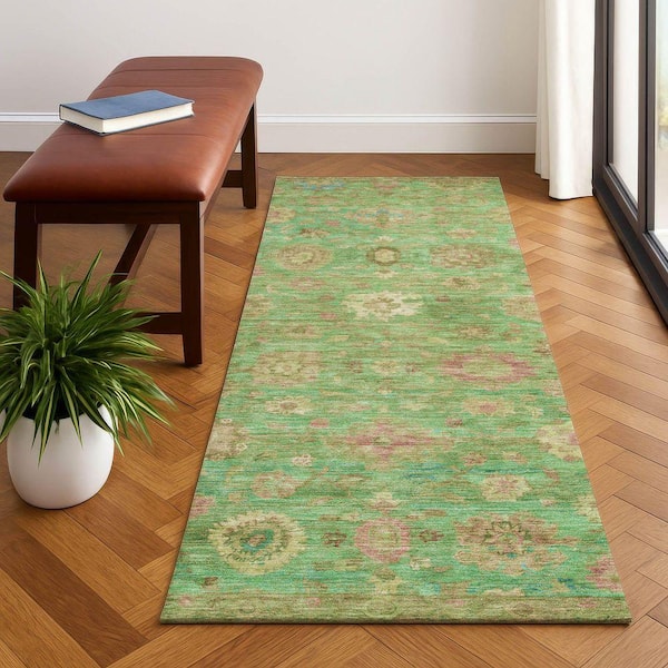 Mayfield Premium Machine Washable Abstract AMF1770 Lime 2 ft. 3 in. x 7 ft. 6 in. Runner Rug