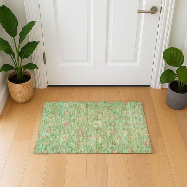 Mayfield Premium Machine Washable Abstract AMF1770 Lime 2 ft. x 3 ft. Area Rug