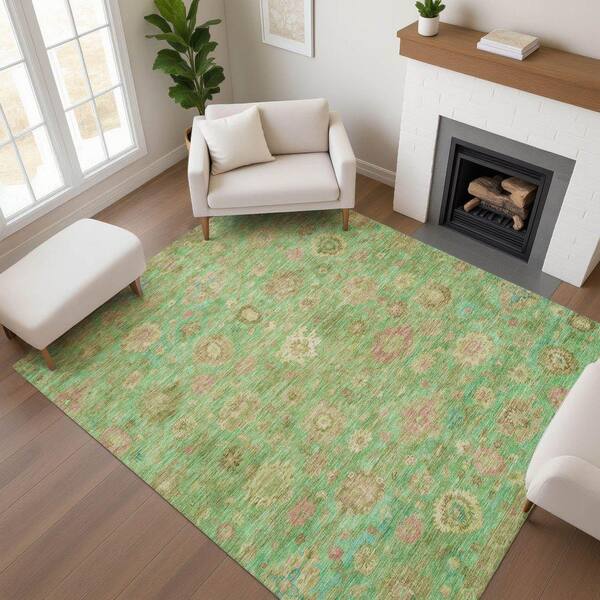 Mayfield Premium Machine Washable Abstract AMF1770 Lime 3 ft. x 5 ft. Area Rug