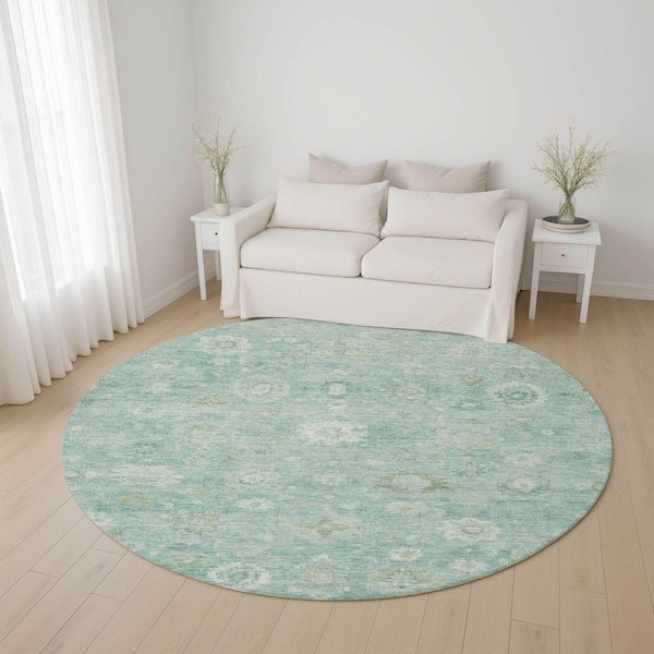 Mayfield Premium Machine Washable Abstract AMF1770 Teal 8 ft. x 8 ft. Round Rug