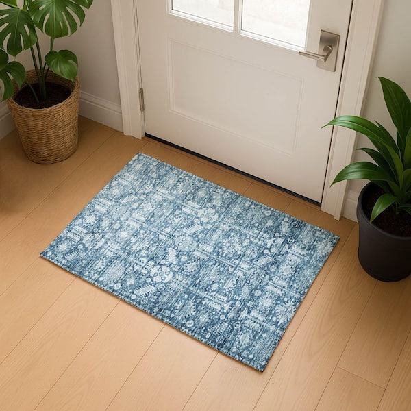 Mayfield Premium Machine Washable Abstract AMF1771 Denim 2 ft. x 3 ft. Area Rug