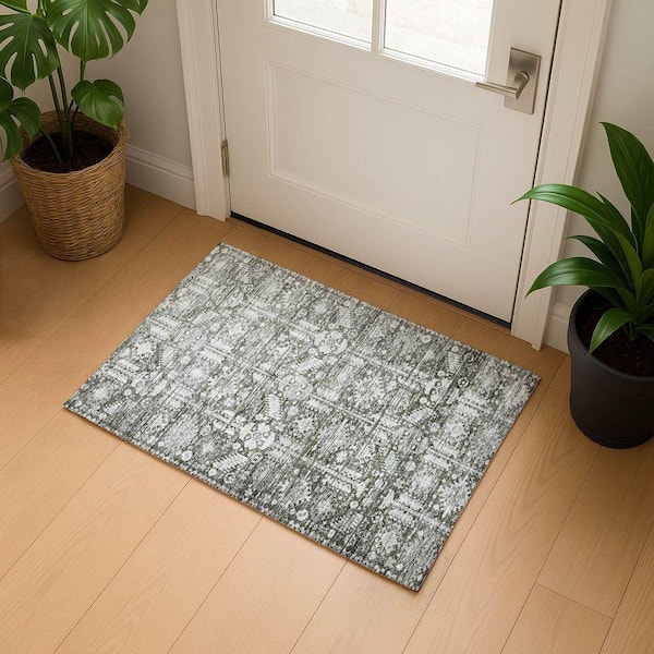 Mayfield Premium Machine Washable Abstract AMF1771 Pewter 2 ft. x 3 ft. Area Rug