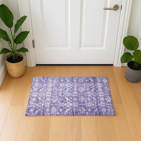 Mayfield Premium Machine Washable Abstract AMF1771 Purple 2 ft. x 3 ft. Area Rug