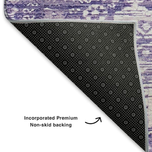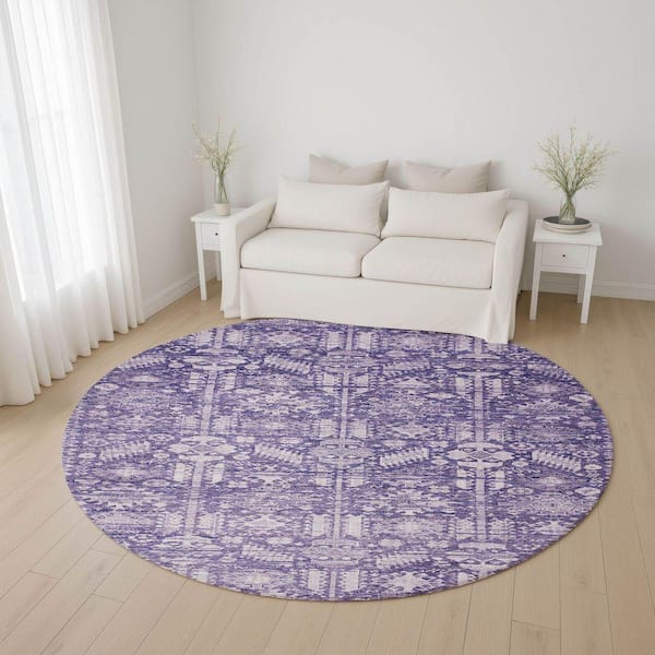 Mayfield Premium Machine Washable Abstract AMF1771 Purple 8 ft. x 8 ft. Round Rug