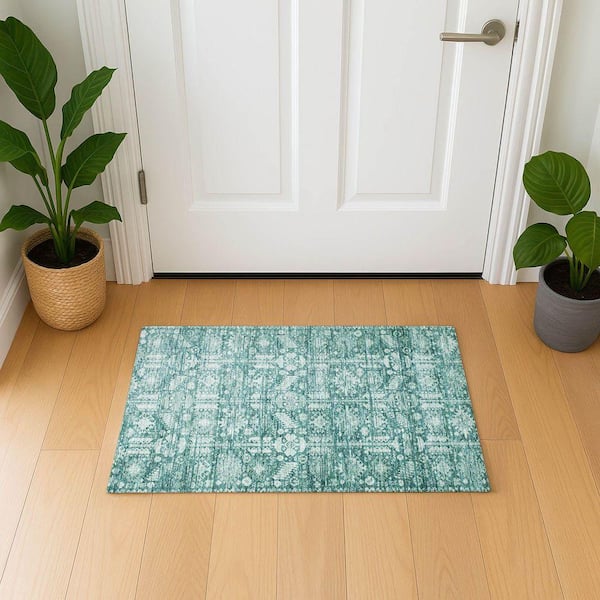 Mayfield Premium Machine Washable Abstract AMF1771 Teal 2 ft. x 3 ft. Area Rug