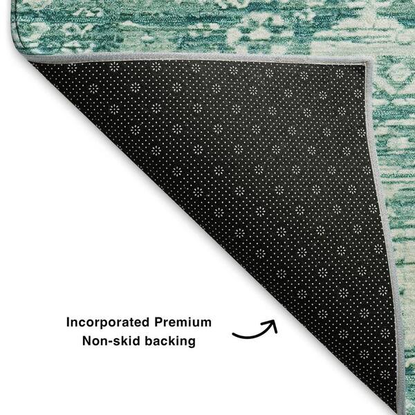 Mayfield Premium Machine Washable Abstract AMF1771 Teal 8 ft. x 8 ft. Round Rug