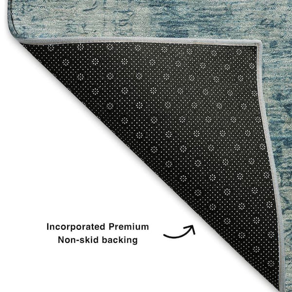 Mayfield Premium Machine Washable Abstract AMF1773 Blue 8 ft. x 8 ft. Round Rug