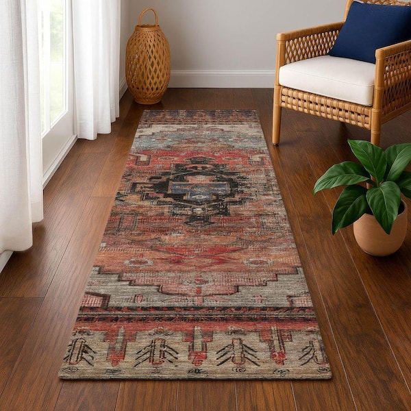 Mayfield Premium Machine Washable Abstract AMF1776 Paprika 2 ft. 3 in. x 7 ft. 6 in. Runner Rug