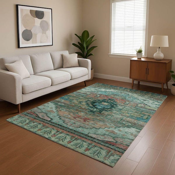 Mayfield Premium Machine Washable Abstract AMF1776 Teal 5 ft. x 7 ft. 6 in. Area Rug