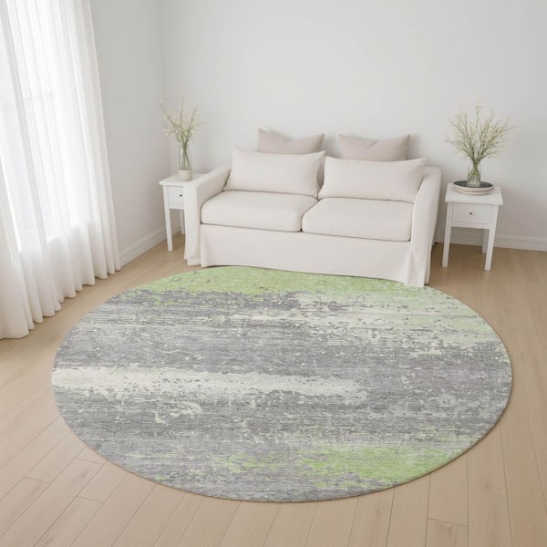 Mayfield Premium Machine Washable Abstract AMF1777 Aloe 8 ft. x 8 ft. Round Rug