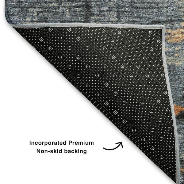 Mayfield Premium Machine Washable Abstract AMF1777 Blue 8 ft. x 8 ft. Round Rug