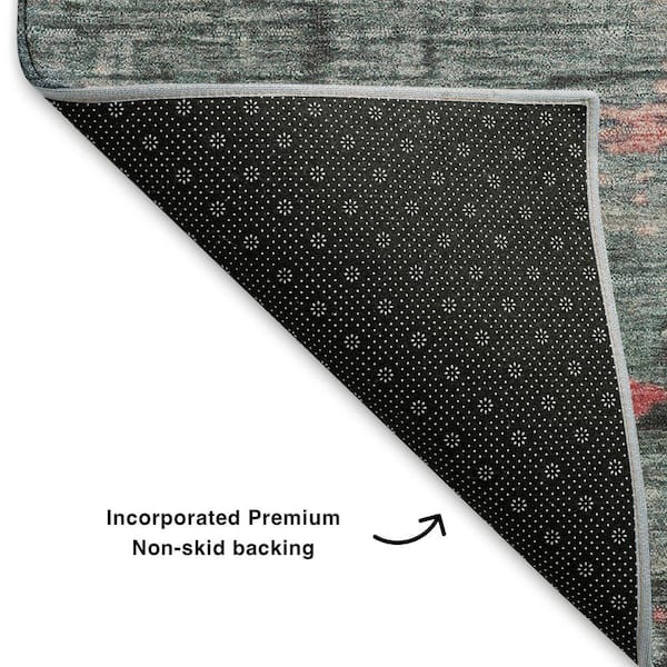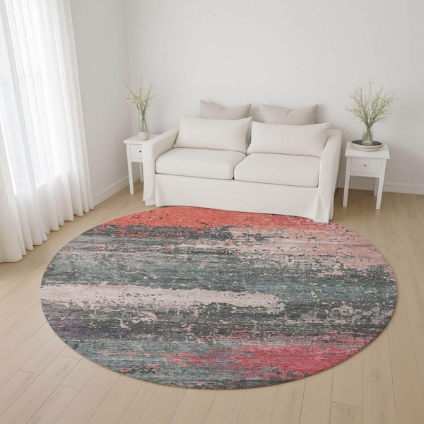 Mayfield Premium Machine Washable Abstract AMF1777 Coral 8 ft. x 8 ft. Round Rug