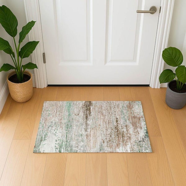 Mayfield Premium Machine Washable Abstract AMF1777 Khaki 2 ft. x 3 ft. Area Rug