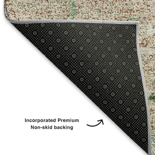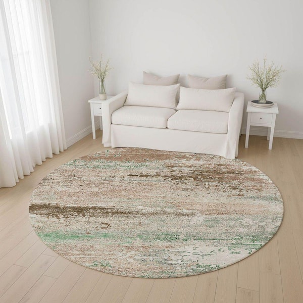 Mayfield Premium Machine Washable Abstract AMF1777 Khaki 8 ft. x 8 ft. Round Rug